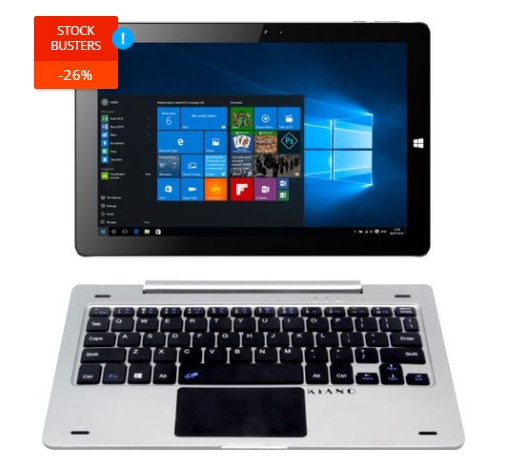 1. Laptopul 2 in 1 Kiano Intelect X3 HD cu procesor Intel Atom® x5-Z8350 pana la 1.92 GHz, 10.1", IPS HD, 2GB, 32GB eMMC, Intel HD Graphics, Microsoft Windows 10, are o reducere de 26% in campania eMAG reduceri laptopuri Stock Busters.