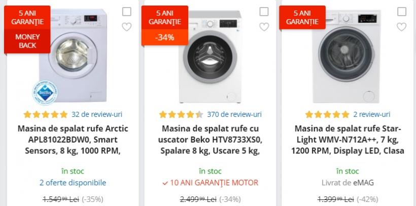 eMAG reduceri. 3 masini de spalat si la 800 lei inainte de Black Friday 2019