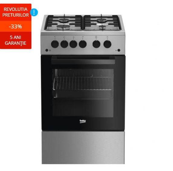 3. Aragazul Beko FSGT52110DXO, cu 4 arzatoare, pe gaz, cu aprindere electrica, de 50 de cm, fabricat din inox, are o reducere de 33% in campania eMAG reduceri electrocasnice Revolutia Preturilor.