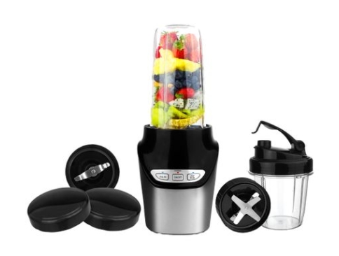 2. Cei care vor sa isi innoiasca micile electrocasnice din bucatarie pot achizitiona un blender Heinner HSB-1000, 1000 W, cu 2 recipiente de 0,5 litri, respectiv de 1 litru, cu 2 viteze, Pulse, fabricat din inox, care beneficiaza de o reducere de 61% in campania eMAG reduceri electrocasnice.