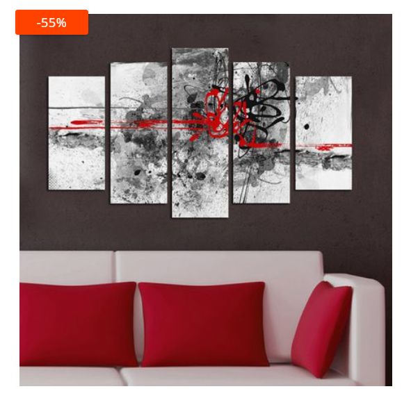 De pilda, un tablou din 5 piese Charm, cu dimensiunile 110 x 60 cm si model abstract, poate fi cumparat acum la jumatate de pret.
