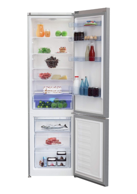 Este vorba despre combina frigorifica Beko RCSA400K30XB, cu un volum extrem de generos de 380 de litri, clasa A++ de eficienta energetica, Active Fresh Blue Light, zona 0°-3°C, inaltimea de 201 cm, de culoare argintie, care are o reducere de 25% in campania eMAG reduceri combine frigorifice.