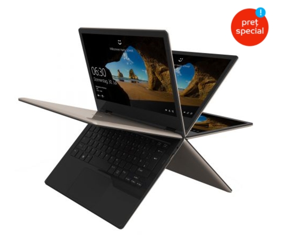 Iata cateva dintre detaliile sale tehnice: ecran: 11.6" (29.5 cm), 1366 x 768 px, 16:9, LED IPS; Procesor: Quad Core Intel Atom X5-Z8350, 1.44 GHz, Burst pana la 1.92 GHz; Memorie RAM: 2GB DDR3; Memorie Flash: 32GB; Sistem de Operare: Microsoft Windows 10 Home. Pretul este foarte accesibil si poate fi gasit AICI.