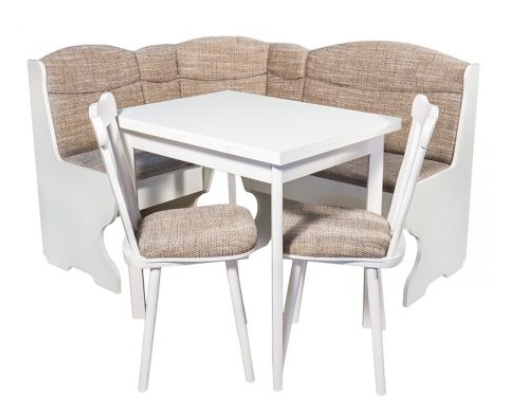 9. Coltarul pentru bucatarie Parma Alb Elvila, cu masa extensibila si 2 scaune, este inclus si el in campania eMAG. Bancheta si masa sunt realizate in constructie demontabila iar scaunele in constructie nedemontabila.