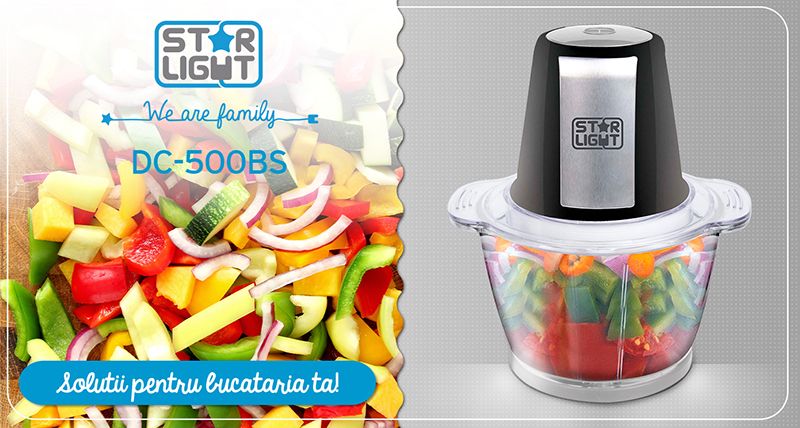 5. Tocatorul Star-Light DC-500BS, 500W, 1 l, vas sticla, din inox, are o reducere eMAG de 35% in aceasta perioada. Tocatorul Star-Light DC-500BS poate fi ajutorul mult asteptat din bucataria dumneavoastra. Poate toca aproape orice, fie ca e vorba despre ceapa, fasole, cartofi sau carne frageda, datorita lamelor sale ascutite, realizate din otel inoxidabil. Oferta este AICI.