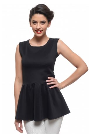 Spre exemplu, o bluză office neagră cu peplum are o reducere de 72% și costă 25 de lei. Modelul surprinde prin liniile drepte și pliurile delicate care marchează talia și se poate purta cu o fustă creion și pantofi cu toc înalt.