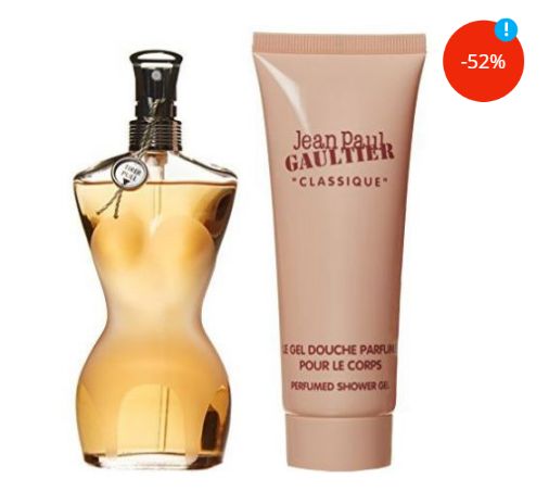 Multe parfumuri pentru femei pot fi cumpărate acum la jumătate de preț. De exemplu, un set cadou Jean Paul Gaultier Classique, apă de toaletă, 100 ml + loțiune de corp, 75 ml, are o reducere de 52%.