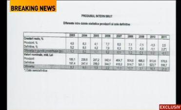 Documentul arată că datele provizorii care au trimise de Institutul Naţional de Statistică (INS) la Ministerul de Finanţe, respectiv produsul intern brut (PIB) aferent anului 2011, erau de 578,6 miliarde lei.