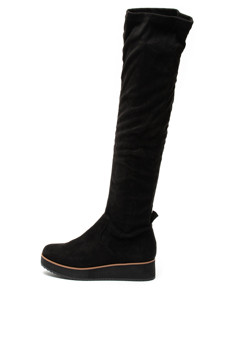 1. O pereche de cizme lungi de piele intoarsa sintetica cu platforma wedge Bullboxer beneficiaza de o reducere de 45% in campania Fashion Days Black Friday 2019.