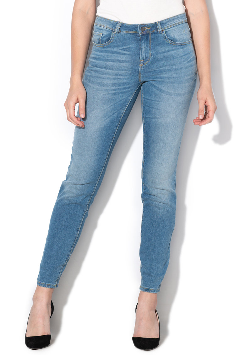 5. O pereche de blugi slim fit United Colors of Benetton, de culoare bleu, cu talie medie, lungi, cu 5 buzunare, beneficiaza de o reducere de 73% de Black Friday 2019 si costa doar 42,99 lei.
