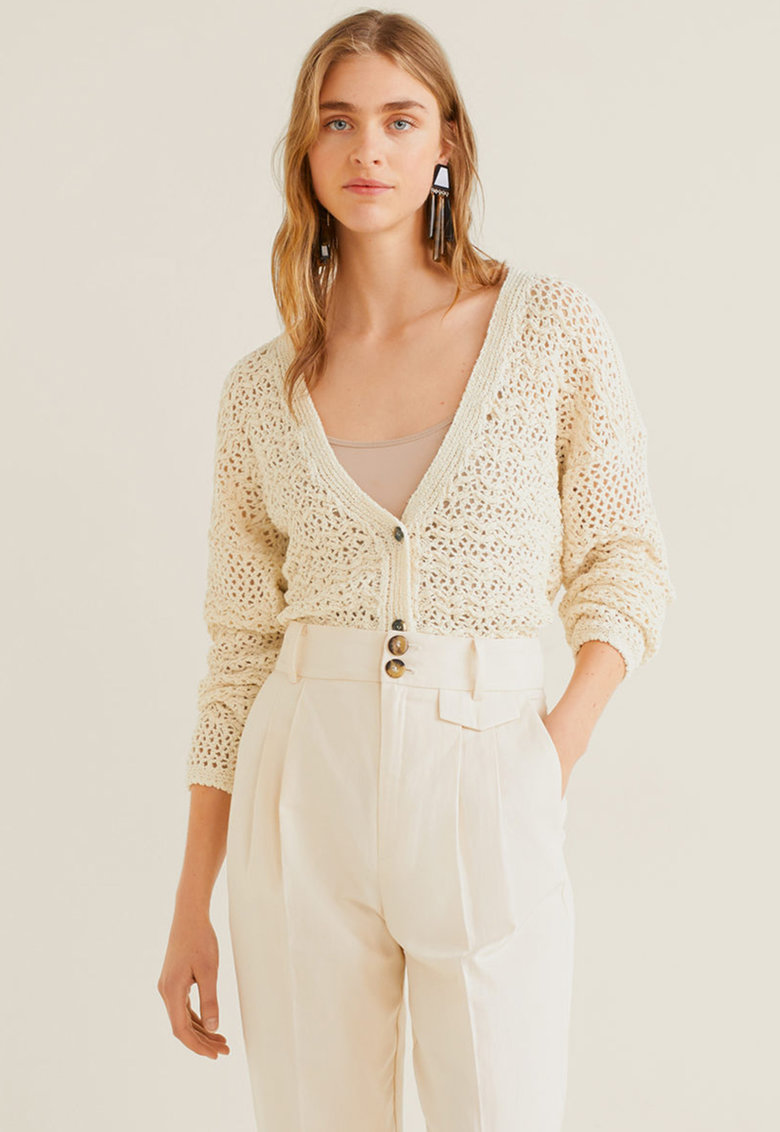 6. Un cardigan cu nasturi Farm de la Mango are o reducere de 35% si costa 129,99 lei.