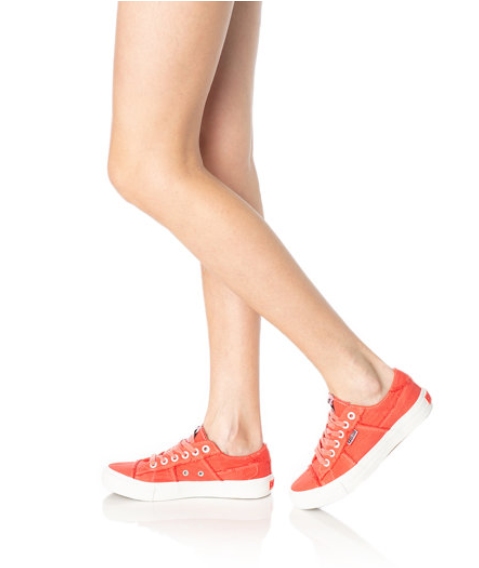 Perechea de tenisi corai, in stilul casual, sunt din panza si au varful rotund. Talpa este plata. Tenisii se incheie cu sireturi.