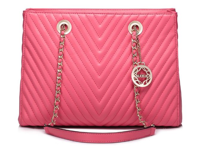 1. O geantă roz, de damă, Nucelle, din piele naturală, are o reducere de 46%.