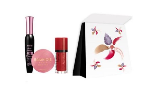 4. Un pachet Promo Bourjois (Mascara Bourjois Volume Glamour 01 Ultra Curl, 12 ml + Fard de obraz Bourjois Joues 54 Rose Frisson, 2.5 g + Ruj Bourjois Rouge Edition Velvet 01 Personne Ne Rouge, 7.7 ml) are o reducere de 61% și costă 61 de lei.