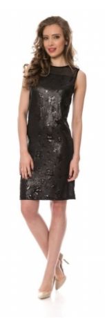Rochia casual este neagră, simplă, cu mânecă scurtă. Modelul are o croială cloș, ce se potrivește tuturor tipurilor de siluete. Este decupată pe laterale și se închide cu fermoar ascuns pe spate. Poate fi purtată cu pantofi cu toc pentru o ținută office, elegantă.