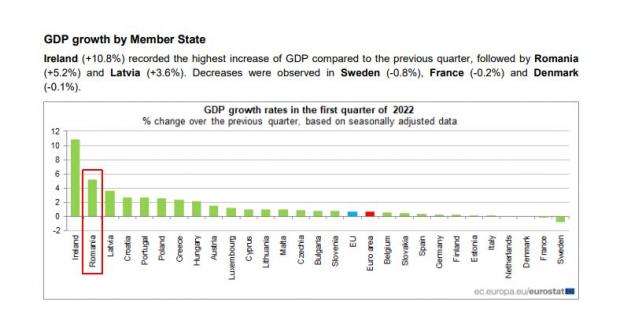INS arăta la momentul respectiv o creștere a economiei României de 5,2% în primul trimestru al acestui an, față de ultimul trimestru din 2021.