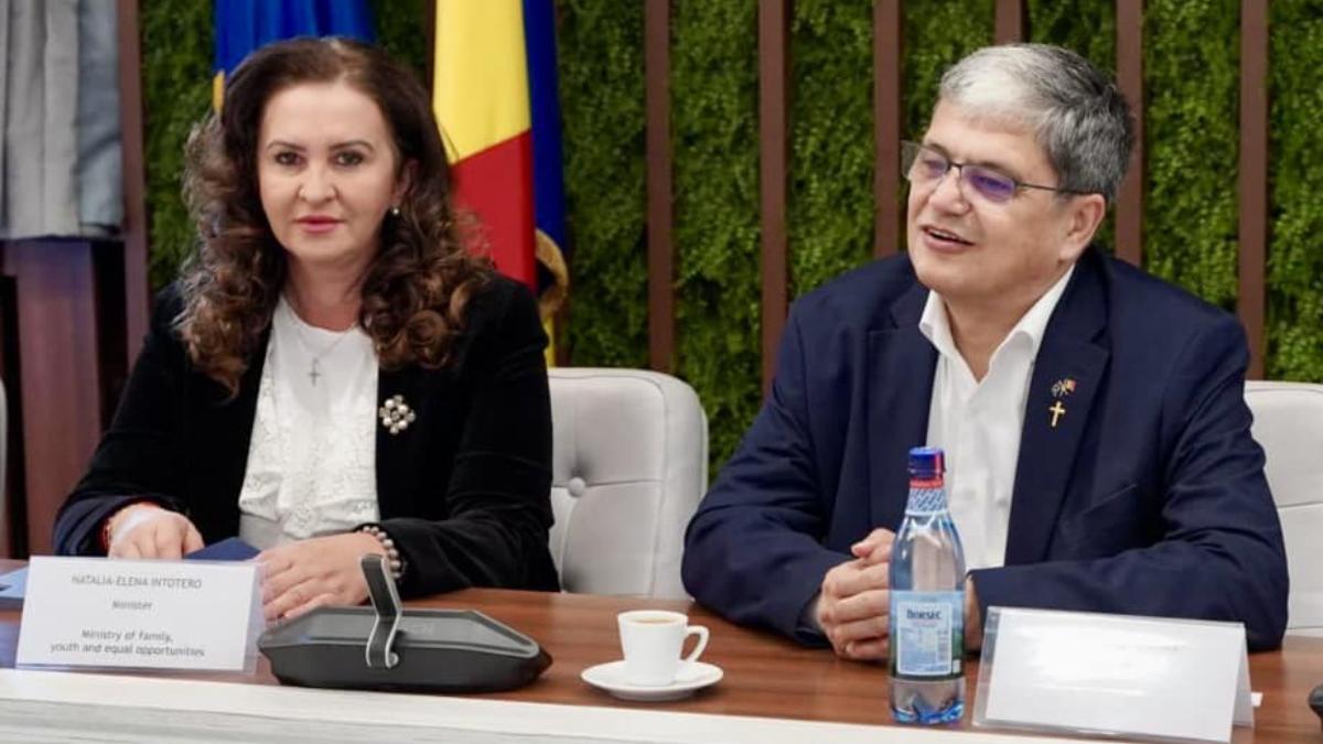 Ministrul Finanțelor, Marcel Boloș și Ministrul Familiei, Natalia Intotero. Sursa foto: Facebook/ Marcel Boloș