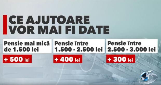 Românii care au o pensie între 2.500 şi 3.000 de lei vor primi un ajutor de 300 de lei.