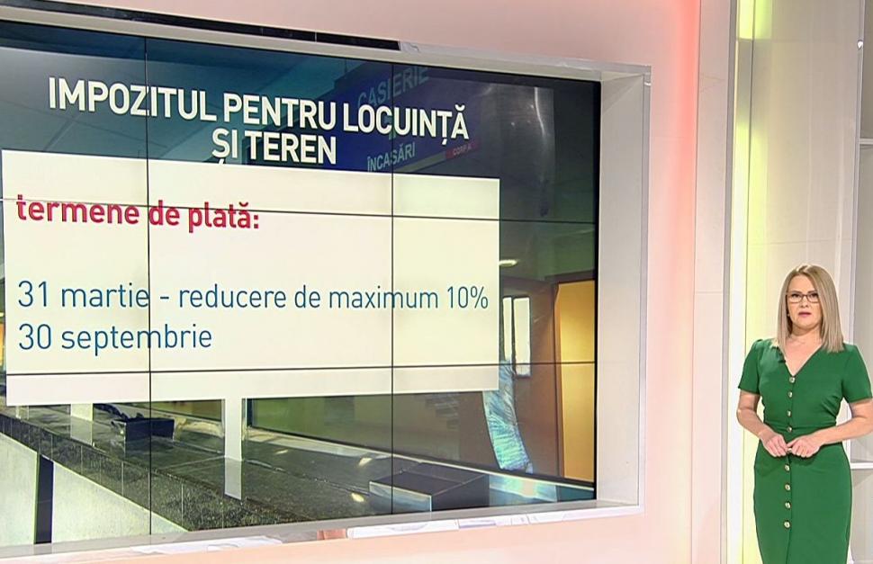 Incepem cu impozitul pentru casa si teren. Ca si in anii precedenti, exista doua date scadente, 31 martie daca vreti sa beneficiati de o reducere, sau 30 septembrie. Valoarea acestor impozite este calculata de autoritatile locale, deci difera de la un oras la altul.