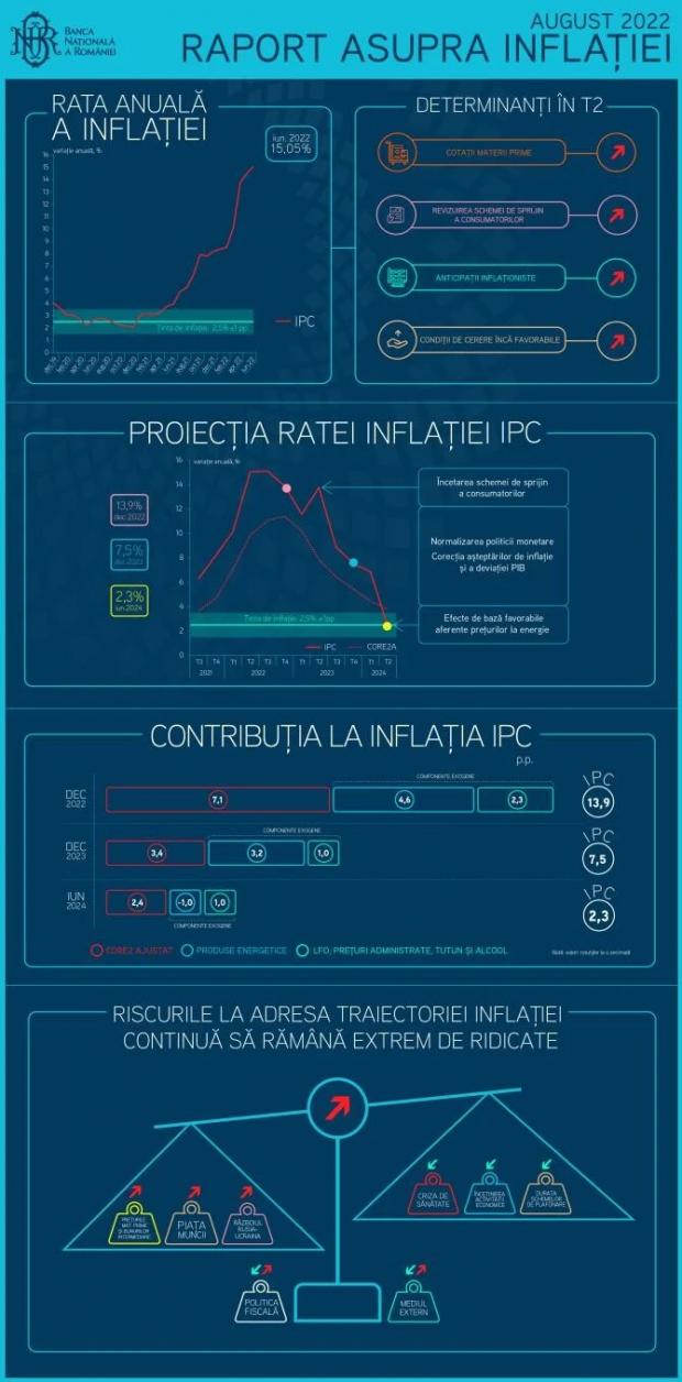 El a precizat că rata inflaţiei în acest trimestru, se plafonează în jur de 15%, dar în august e posibil să mai fie o creştere generată de scăderea unor preţuri alimentare volatile.