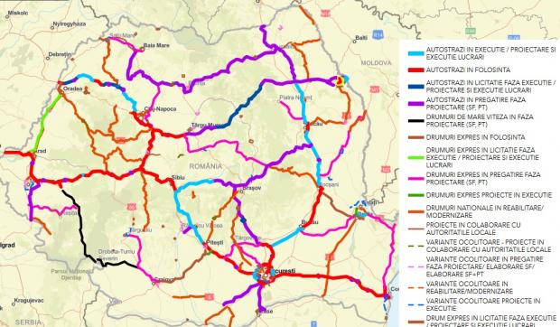 Hartă autostrăzi și drumuri expres. Sursa: CNAIR