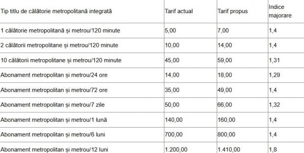 Astfel, de exemplu, costul unei călătorii crește de la 5 lei la 7 lei, iar cel al unui abonament lunar, de la 140 lei la 160 lei.