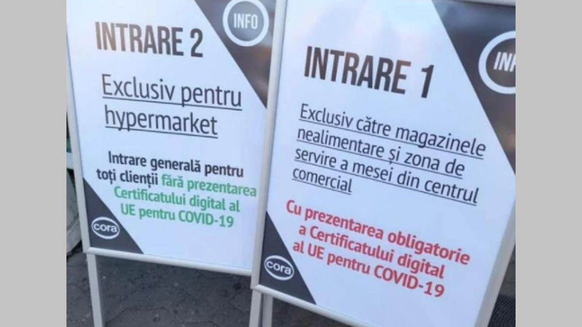 Rețeua Cora anunță că accesul în hipermarketurile sale aflate în incinta unor centre comerciale se face pentru toți consumatorii, posesori sau nu ai unor certificate verzi.