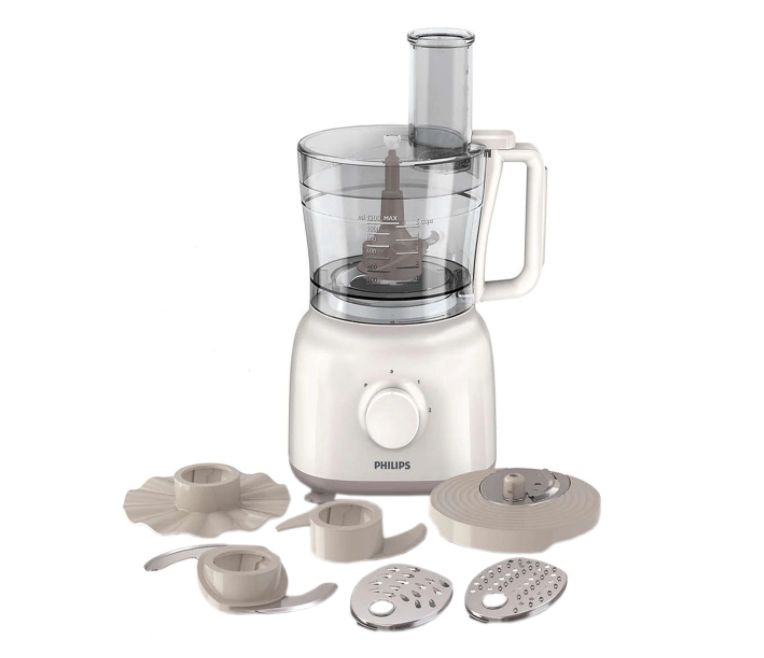 1. Robot de bucatarie Philips HR7627/00 Daily Collection, 650 W, 2 viteze + puls, 2.1 L, dispozitiv de emulsifiere, accesorii inox, Alb.