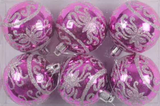 2. Set 6 globuri decorate eNoelle, mov, diametrul de 6 cm.