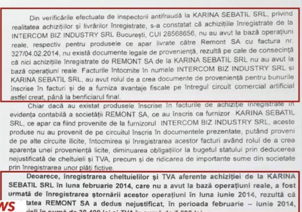În anul 2014 s-au identificat mai multe facturi între Remont SA și firma Karina Sebatil SRL.