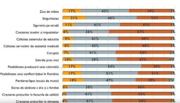 Însă aproape 40% dintre români au acordat note maximale și la teama pentru grija zilei de mâine, aici rezultă și neîncrederea în autoritățile locale și centrale.