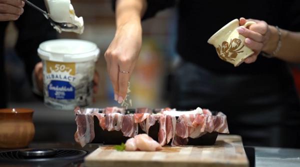 După tăierea bucăților de carne, Stefan a adăugat restul ingredientelor, iar Ana a folosit cu îndemânare șervețelele de la Sano pentru a unge tava folosită la coacerea compoziției. Monica nu s-a lăsat mai prejos, așa că a dat și ea o mână de ajutor. Aceasta a primit sarcina să acopere întrega tavă cu bucați de bacon, pentru ca la final, Ștefan să adauge multă verdeață pentru un plus de savoare și prospețime.
