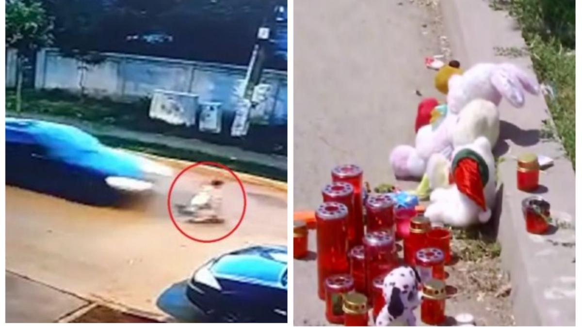 Băieţelul de doar 4 ani din imagini se plimba cu trotineta pe o stradă din Buftea în jurul orei 21. Într-o fracţiune de secundă, şoferul de 20 de ani care circula cu 110 km/h l-a lovit puternic. Cel mic a fost aruncat zeci de metri. Tragedia a avut loc chiar sub ochii mamei.