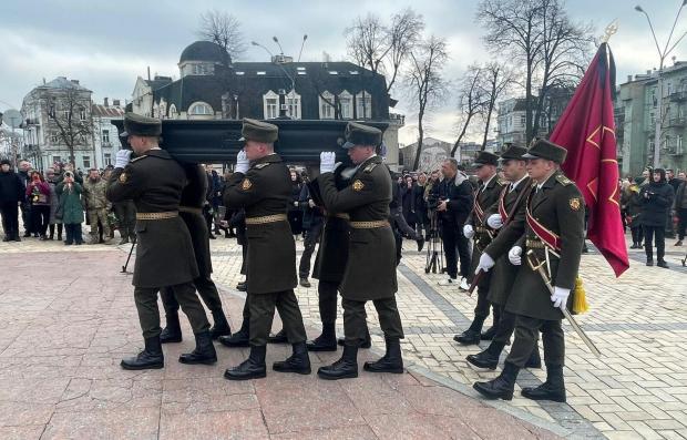 După serviciul religios, o procesiune militară a purtat sicriul lui Koțiubailo până la locul celebrului Maidan (Piața Independenței), pentru o comemorare publică mai amplă (foto următoare).