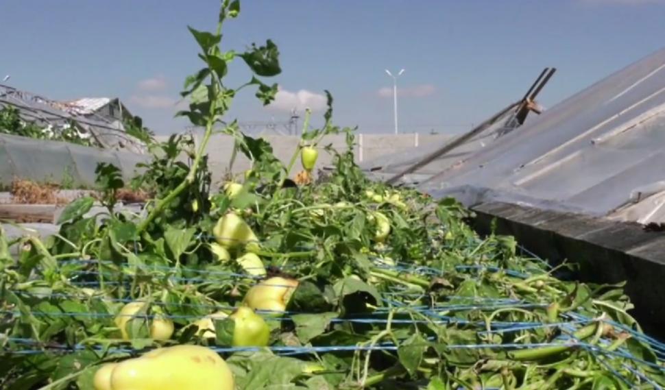 În doar jumătate de oră, furtuna a distrus toate culturile de legume a fermierilor din Topraisar, judeţul Constanţa. Serele care adăposteau plantele au fost puse la pământ, şi, odată cu ele, speranţele fermierilor de a mai scoate profit.