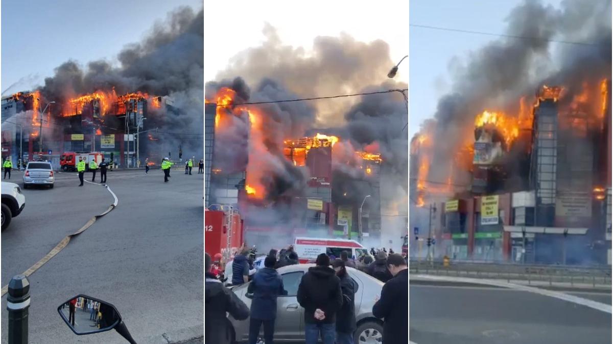 Update 18:09 - Raed Arafat, șeful DSU, avertizează că există riscul ca mall-ul Prosper să se prăbușească din cauza incendiului puternic.