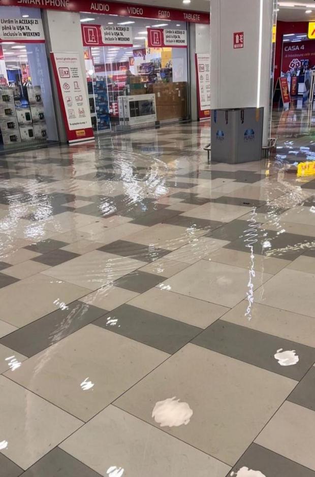 De asemenea, Plaza Mall din București a fost inundat în urma furtunii din această seară.