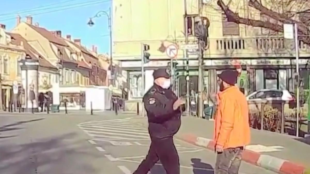 Scenele violente au avut loc sâmbătă. Camera de bord a unui autoturism în trecere a surprins o parte din momentul bătăii. Un pumn, mai exact. Poliţistul local din Sibiu ar fi recurs la acest gest după ce victima ar fi devenit violentă şi l-ar fi ameninţat. Aceasta fusese amendată cu 1.000 de lei pentru cerşetorie.