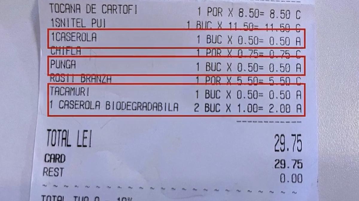 Un prânz la o cantină costă circa 30 de lei. Din aceşti bani, aproape 4 lei sunt pentru ambalaje, adică 11%. Dintr-un alt prânz de 23 lei, 3 lei costă ambalajele, ceea ce reprezintă şi mai mult, aproape 13%. Unii oameni consideră această sumă exagerată, alţii au găsit soluţii.