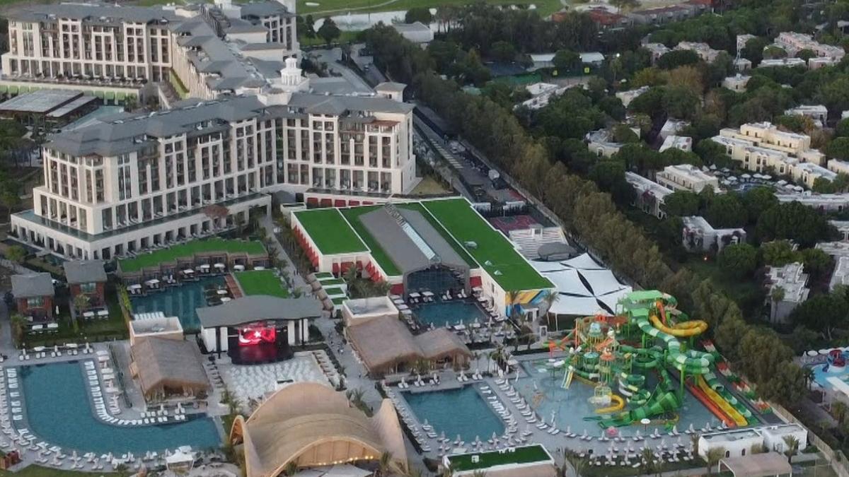 La început de noiembrie, acest resort all-inclusive din Antalya este plin în proporție de 90%. Asta înseamnă peste 2.000 de turişti, care au venit aici pentru mâncarea din belșug, vremea de plajă şi condițiile de lux în care sunt cazați.