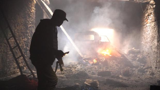 Nu se ştie dacă la momentul bombardamentului au fost oameni prinşi în depozit. Este un miros puternic de fum.