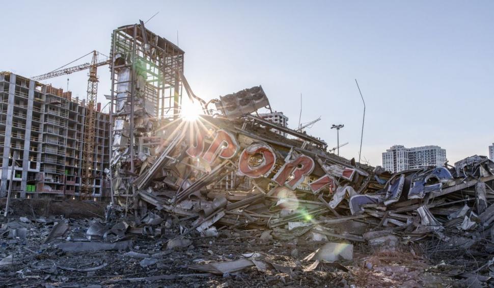 Mall bombardat în Kiev de forțele ruse. Bombardamentul a avut loc în noaptea de 21 martie 2022, în districtul Podilskyi din capitala ucraineană