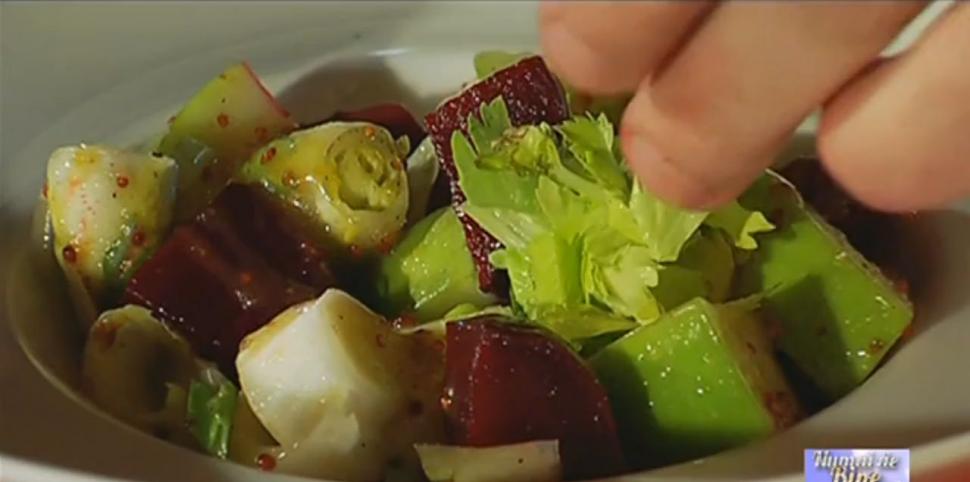 Unul dintre cele mai frumoase aspecte ale postului este că ne provoacă imaginaţia. Deşi trăim cu impresia că mâncarea trebuie să fie anostă când eşti condiţionat de ingrediente şi alimente, Anca Lungu demonstrează cum poţi descoperi lucruri gustoase pe care nu le-ai face în mod obişnuit. Lipsa cărnii ne provoacă şi ne dă libertatea să experimentăm pentru a face lucruri extraordinare. Aşa s-a transforamat o salată într-un adevărat răsfăţ culinar.