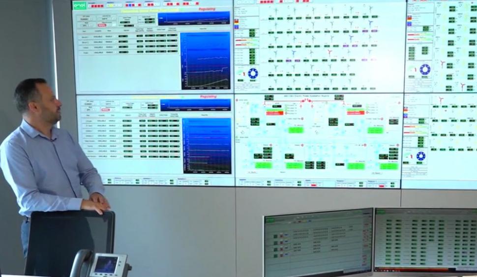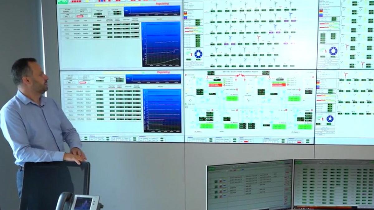 "În camera de comandă urmărim în timp real funcţionarea tuturor instalaţiilor, parcuri eoliene, centrale fotovoltaice, staţii electrice. În acest moment, cu ajutorul sistemului SCADA, controlăm procesul de producere a energiei electrice şi urmărim cum sursa primară de energie (vânt/ radiaţie solară) este convertită în energie electrică.