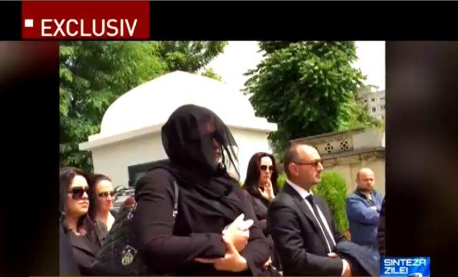 Managerul Hexi Pharma, Florentina Dinu, a mers miercuri, la înmormântarea patronului Dan Condrea, cu ochelari de soare și cu un văl pe cap, deși nu a fost o zi cu soare.