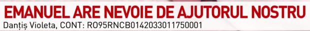 Emanuel, o mână de om, este copilul cel mai mic din România care se luptă cu boala numită: amiotrofie spinală tip 1, ceea ce înseamnă că nu se poate mișca și respira fără ajutor. Tratamentul de bază înseamnă injecții periodice extrem de scumpe: 70.000 de Euro.