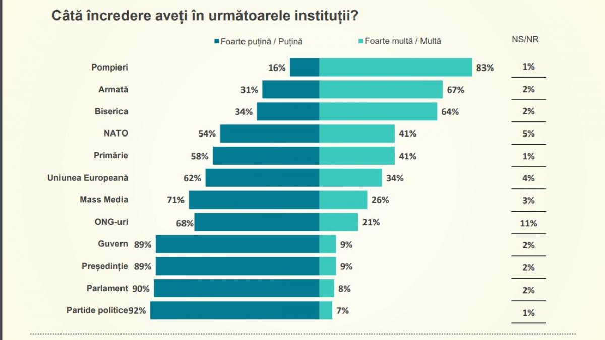 74% dintre români au răspuns că România merge mai degrabă într-o direcţie greşită, 19% sunt de părere că direcţia este una bună, în timp ce 7% nu au răspuns.