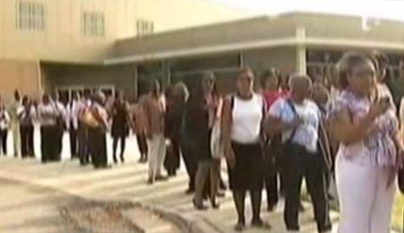 În interior, angajatorii privesc şi ei uluiţi spre uriaşa coadă.