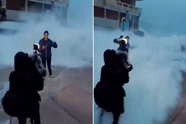 Jurnalista nu şi-a pierdut calmul şi a continuat transmisia.