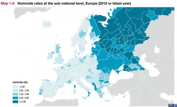 În cazul României, după cum se poate vedea în această hartă, Moldova este regiunea unde au avut cele mai multe crime. De asemenea, în Republica Moldova se observă aceeaşi situaţie.